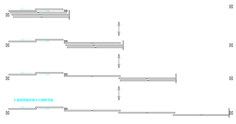 ルクスライダーの開閉は、すべてのフェンスが片方にスライドする「片引き」とフェンスが左右にスライドする「引き分け」の2種類があります。