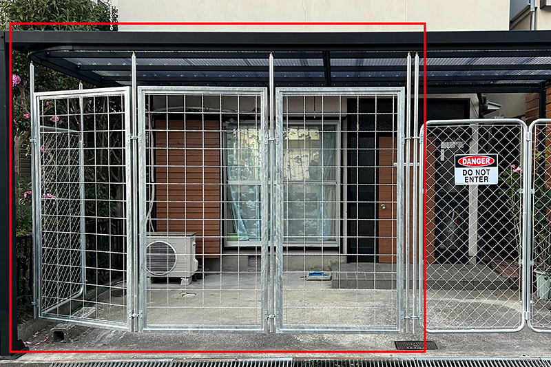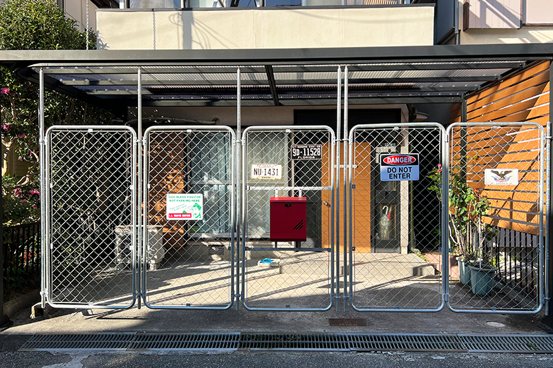 他メーカーは腰~胸の高さほどの製品が多い中、当製品は背の高さ以上のフェンス(扉)設置が可能です。敷地内への物の投げ入れやお車への10円チョップなどのイタズラ防止などの防犯ゲートとしてご活用いただけます。また、ゲート設置後の防犯カメラでも、玄関ポーチから敷地外部の通りといった周辺の様子をしっかり記録ができるため、自宅前の防犯・安全が確保されます。「フェンス等は開け閉めが面倒で、開けたままにしがち…」という方にも、閉めたいときに閉めることができる防犯の選択肢を手に入れましょう。