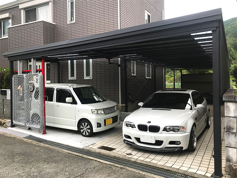 近年の個人住宅向けの車庫形状はオープンガレージ型が主流となってきており、この形は広い間口が特徴となります。弊社が販売・施工を行うアメリカンゲートは、さまざまな間口の広さでも対応可能なフリーゲート。カーポート屋根との一体型での設置や、開閉・移動が可能な敷地境界フェンスとしても設置が可能ですので、「普段は開けておいて、夜間や長期・長時間外出時などにはしっかり閉められる」という選択を叶えます。ご自宅の顔となるゲートでオシャレに目立ってみてはいかがでしょうか。